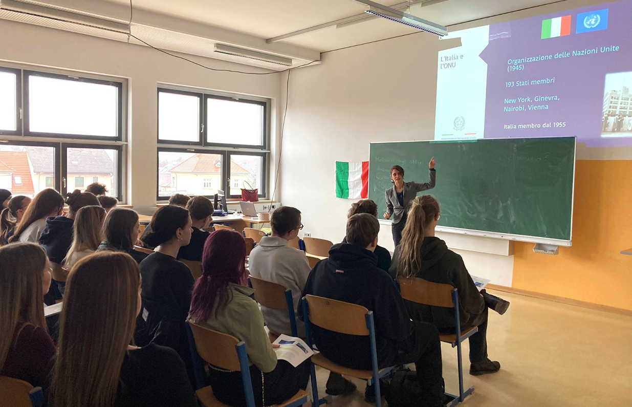 Was passiert, wenn Sprache Diplomatie trifft? Am 29.1 hatten die 4AK und die 4BK einen besonderen Besuch der Italienischen Vertretung bei der UNO in Wien.