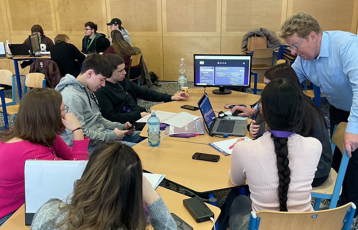 Bei einem Ecomania-Spieltag schlüpfen die Teilnehmer:innen in die Rollen von Regierungsmitgliedern, Unternehmensvorständ:innen und Gewerkschaftsvertreter:innen. In ihren Funktionen führen sie Gehaltsverhandlungen, treffen Preisentscheidungen und halten Pressekonferenzen ab. Die jeweiligen Auswirkungen der getroffenen Entscheidungen wirken sich interaktiv auf geteilten Bildschirmen und einem Spielbrett aus. Den Schüler:innen der BHAK Korneuburg hat es auf alle Fälle sehr viel Spaß gemacht!