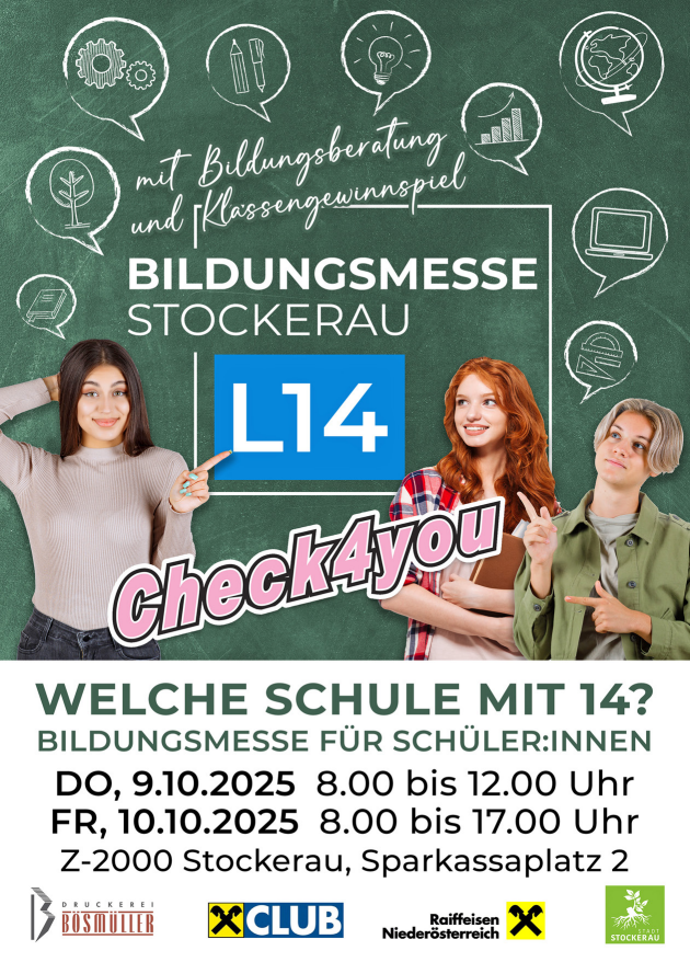 Die BHAK Korneuburg präsentiert sich amDonnerstag, 09.10.2025 08:00 - 12:00 und Freitag, 10.10.2025 08:00 - 17:00wieder auf der Bildungsmesse im Z2000 Stockerau.Wir heißen alle Besucher am Stand der BHAK Korneuburg herzlich willkommen! Bildergallerie