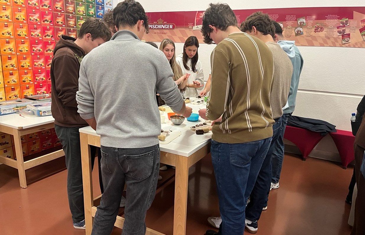 Zu Beginn erhielten die Schülerinnen und Schüler einen spannenden Einblick in die Produktion: Die modernen Maschinen sowie die verschiedenen Schritte der Pralinenherstellung wurden anschaulich erklärt. Im Anschluss durften die Schülerinnen und Schüler selbst aktiv werden und ihre eigenen Pralinen kreieren – ein echtes Highlight des Besuchs!