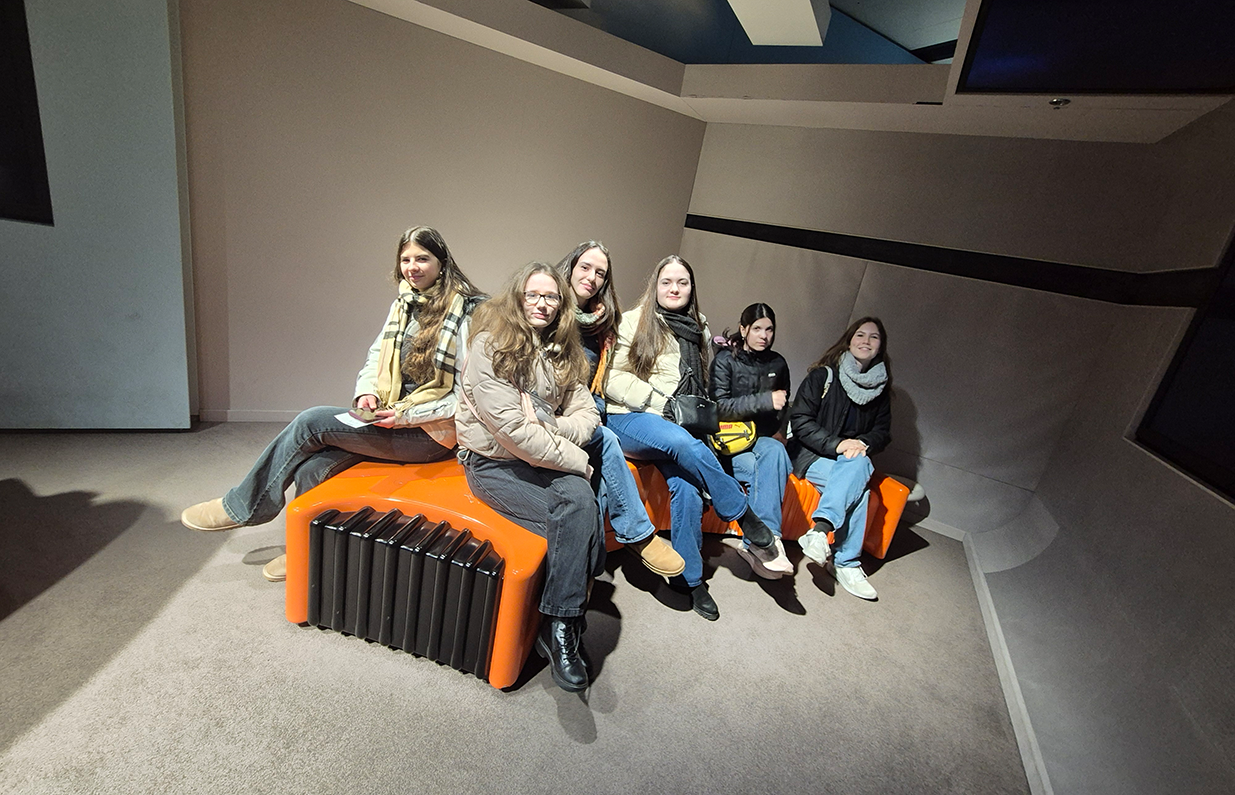 Anschließend besuchte die Klasse den Erlebnisraum. Dort sahen die Schülerinnen und Schüler den Start eines Flugzeugs aus der Sicht des Cockpits. Besonders interessant war das Video über den Weg des Gepäcks – von der Aufgabe am Schalter bis zum Verladen in das Flugzeug. Zudem erhielten sie Einblicke in die Arbeit des Towers und erfuhren, welche Aufgaben die Fluglotsinnen und Fluglotsen übernehmen, um einen sicheren Flugverkehr zu gewährleisten.