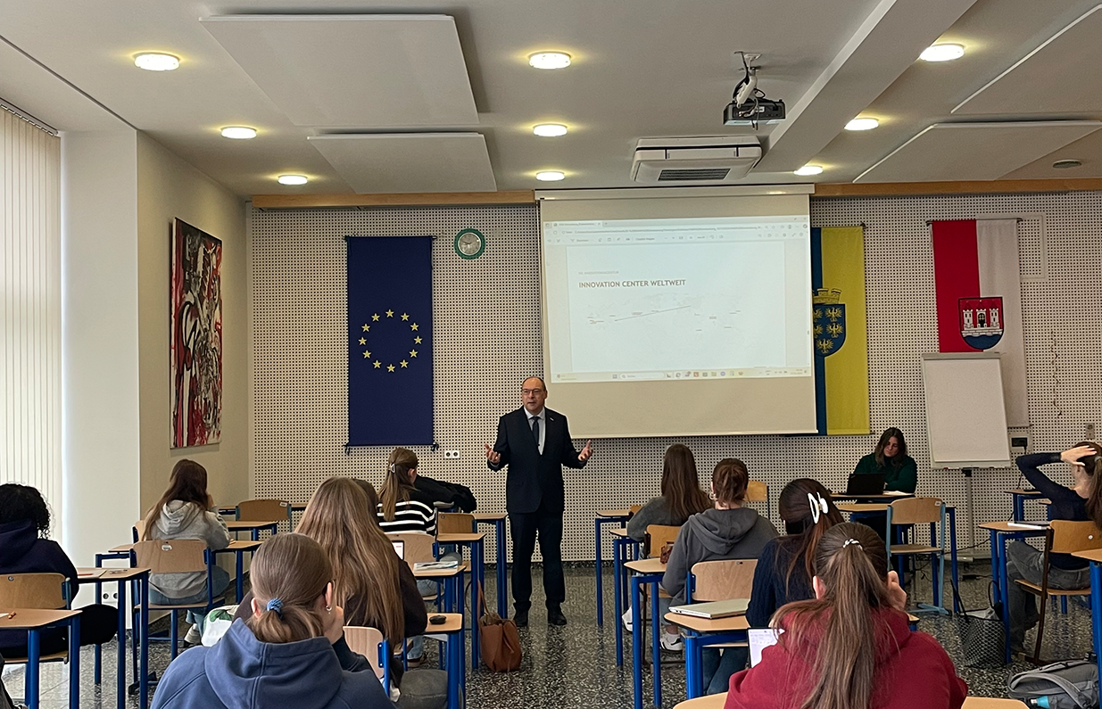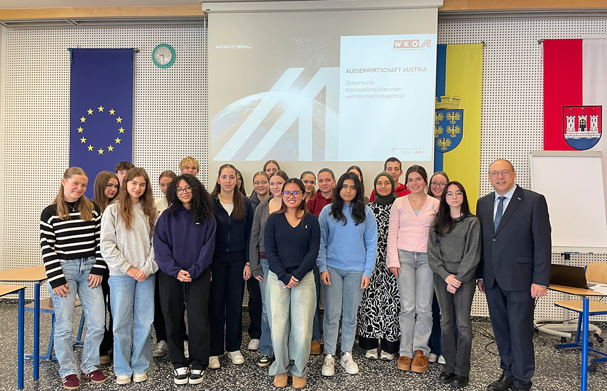 Am 12. November 2025 erhielten die Schülerinnen und Schüler der 3CK im Ausbildungsschwerpunkt „Internationale Wirtschaft“ einen spannenden Vortrag von Mag. Patrick Hartweg, Leiter des Außenwirtschaftszentrums der WKO Niederösterreich.