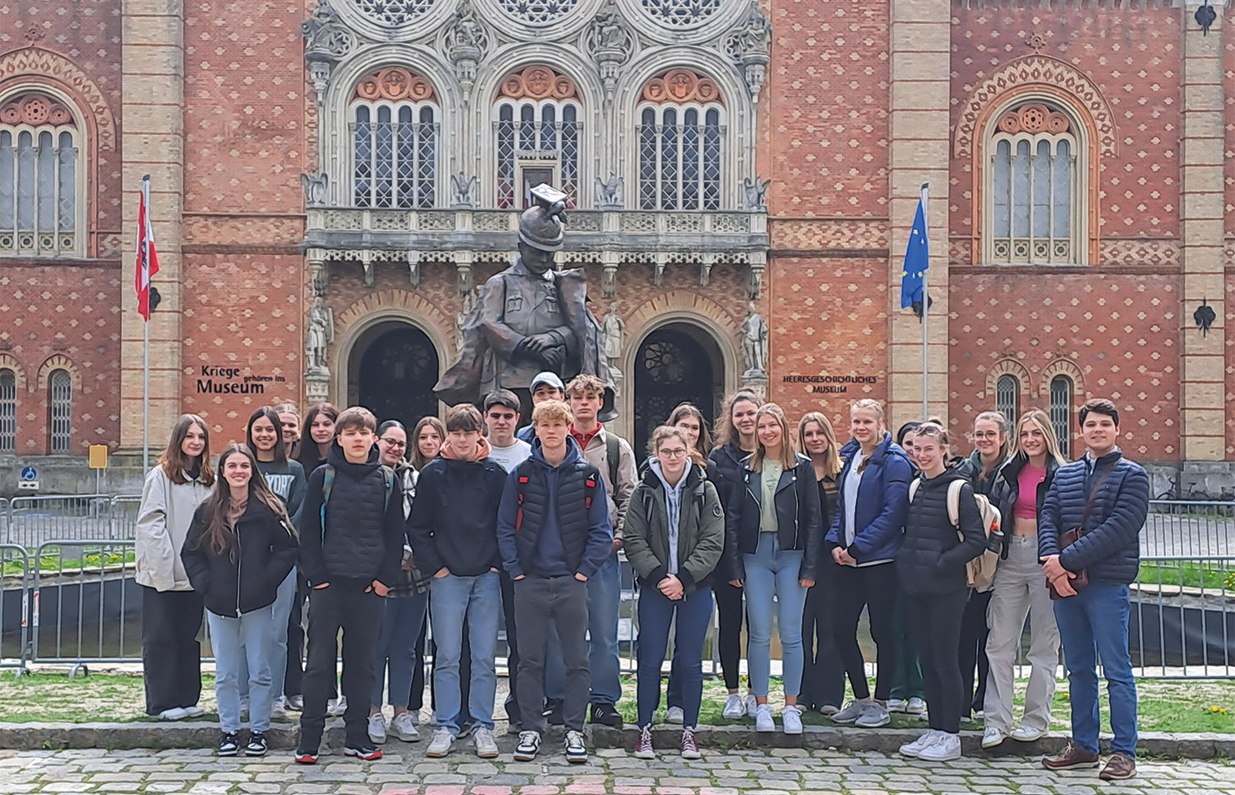 Am 26. April 2023 hatten Schülerinnen und Schüler der Top League, in Begleitung von Frau Professor Edlinger, die Möglichkeit an einer Führung im Heeresgeschichtlichen Museum teilzunehmen. Das Thema der Ausstellung war „Die Urkatastrophe des 20. Jahrhunderts“ und handelte von Österreich-Ungarn im Ersten Weltkrieg. Der Museumsguide brachte den insgesamt 26 Schülerinnen und Schülern das düstere Thema mit viel Begeisterung und interaktiven Fragen näher.