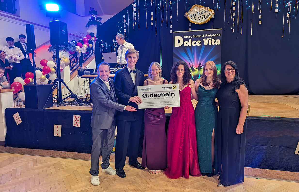 Die feierliche Eröffnung wurde von Herrn Bürgermeister Christian Gepp, MSc sowie von unserer Schulleiterin Frau Mag. Bettina Fennesz-Hasengst begleitet, die in ihren Ansprachen das Engagement der Schülerinnen und Schüler besonders würdigten. Für die musikalische Umrahmung des Abends sorgte die Band „Dolce Vita“, die für Stimmung auf der Tanzfläche sorgte. Ein besonderes Highlight stellten die einstudierte Eröffnung sowie die Mitternachtseinlage der SchülerInnen dar. Zusätzlich sorgte eine Tombola mit attraktiven Hauptgewinnen für Spannung, während eine Fotobox den Gästen die Möglichkeit bot, Erinnerungen mit Familie und Freunden festzuhalten. Zahlreiche Ehrengäste verliehen dem Ball zudem einen besonders festlichen Rahmen.