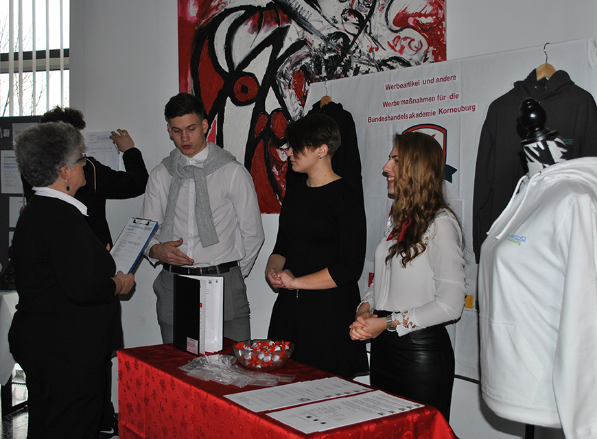 Als Ehrengäste durfte Direktorin Gerlinde Tatzber zahlreiche Direktoren-Kollegen, Auftraggeber, Vertreter der Sponsoren (Raiffeisenbank und Sparkasse Korneuburg) und des Elternvereins begrüßen. Auch Mag. Leopold Wiesinger vom Gründerservice NÖ und Herr Alfred Jordan von der AK Korneuburg waren unter den Gästen.