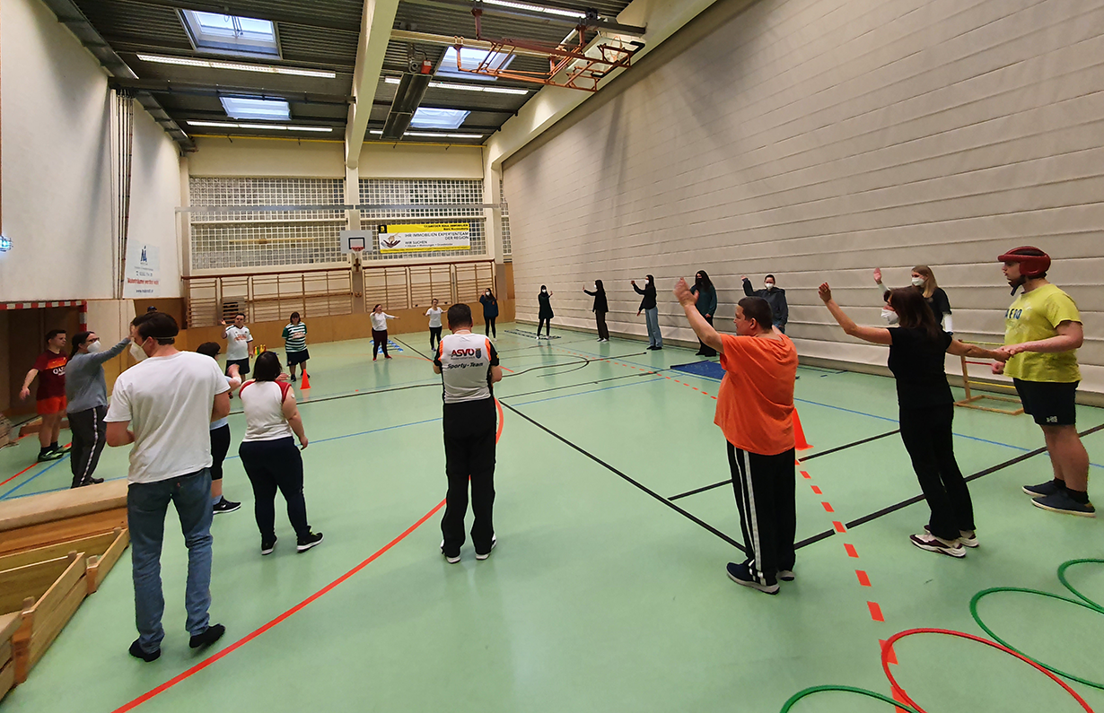 Dabei wurden die SchülerInnen auch auf die Schwierigkeiten aufmerksam. Leider konnten sie miterleben, wie ein Sportler einen epileptischen Anfall bekam, allerdings nach kurzzeitiger Pause wieder mitmachen konnte. Ebenso war es für die SchülerInnen interessant zu beobachten, wie unterschiedlich stark beeinträchtigt die Personen sind. Während manche beispielsweise fast nichts gesprochen haben, wollten sich andere mit den BesucherInnen herzhaft unterhalten. Am Ende durften die SchülerInnen auch selbst mit den SportlerInnen Übungen durchführen und nah am Geschehen sein.