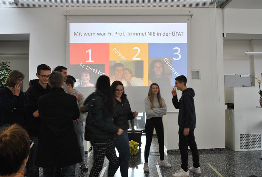 Bei einer Sonderausgabe von "1, 2 oder 3" mussten anschließend Teams aus ihren Klassen sowie ein Lehrerteam unter Beweis stellen, wie gut sie ihre Lehrerin, Marianne Trimmel, kannten. Die 4BK ging dabei als Siegerteam hervor.