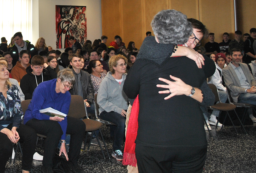 Mit einem Gedicht und kleinen Präsenten verabschiedeten sich auch die SchülerInnen von ihrer Professorin. Tosender Schlussapplaus mit Standing Ovations beendeten die Feier.
